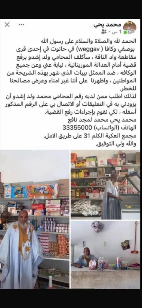 دون وكاف (مجمع العكبه التجارى)–التابع لقرية العكبه شرق انواكشوط -على صفحته الخاصة…تعليقا على حادثة المحامى ول اشدو والكميدى بيباتى