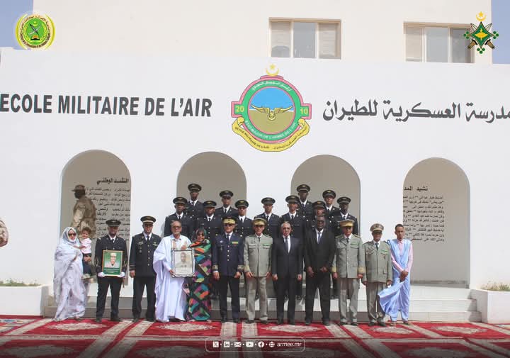 أشرف معالي وزير الدفاع وشؤون المتقاعدين وأولاد الشهداء؛ السيد حنن ولد سيدي، رفقة اللواء محمد المختار مني، قائد الأركان العامة للجيوش المساعد، على حفل تخرج الدفعة السادسة من الطلبة الضباط الطيارين، من المدرسة العسكرية للطيران بأطار، اليوم الخميس 29 مايو 2025.