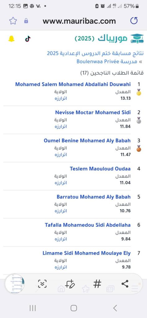 الأخبار وادالناكه:’بلنواع الحره’ تحصدأكبرمعدل فى”بلدية المقاطعة” edt By 25 يوليو، 2025 0 حصدت مدرسة بلنواع الحره أكبر معدل فىاالمقاطعة(البلدية المركزية)فى الواد(13,3)فى مسابقة ابريفيه لهذا العام يرجع ذالك التميز إلى انتقائهالاساتذة ومعلمين من خيرة الكادر النعليمى فى المنطقة شارك هذه المادة