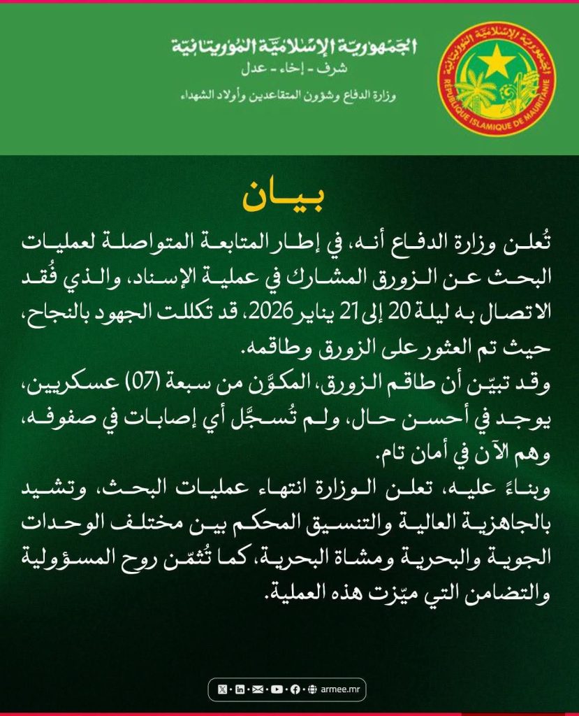 وزارةالدفاع تعلن عن العثورعن الزورق وطاقمه…